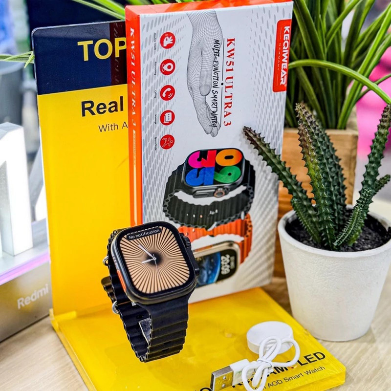 ساعت هوشمند KW51 Ultra 3 از برند Keqiwear یک انتخاب اقتصادی و کاربردی برای افرادی است که بهدنبال امکانات متنوع، طراحی مدرن و قابلیت تماس بلوتوثی هستند. این ساعت با الهام از طراحی ساعتهای سری Ultra، ظاهری اسپرت و جذاب دارد و برای استفاده روزمره و ورزشی کاملاً مناسب است. این مدل به یک نمایشگر رنگی تماملمسی با ابعاد بزرگ مجهز شده که وضوح مناسبی برای مشاهده اعلانها، منوها و اطلاعات سلامتی ارائه میدهد. ساعت KW51 Ultra 3 از قابلیت برقراری تماس از طریق بلوتوث پشتیبانی میکند و به شما امکان میدهد تماسها و اعلانهای شبکههای اجتماعی را بدون نیاز به خارج کردن گوشی مشاهده و مدیریت کنید. در بخش سلامت، این ساعت هوشمند دارای سنسور ضربان قلب، پایش خواب، اندازهگیری اکسیژن خون (SpO2) و گامشمار است که به شما کمک میکند وضعیت فعالیتهای روزانه و سلامت خود را بهتر کنترل کنید. همچنین با پشتیبانی از چندین حالت ورزشی، برای فعالیتهایی مانند پیادهروی، دویدن و ورزشهای روزمره کاربردی خواهد بود. ساعت KW51 Ultra 3 با سیستمعاملهای اندروید و iOS سازگار است و از طریق بلوتوث به گوشی متصل میشود. باتری این ساعت با استفاده معمولی، بین 2 تا 4 روز شارژدهی دارد و از طریق شارژر مگنتی شارژ میشود. بدنه مقاوم، بند قابل تعویض و مقاومت در برابر پاشش آب و تعریق، این ساعت را به گزینهای مناسب برای استفاده روزانه تبدیل کرده است.