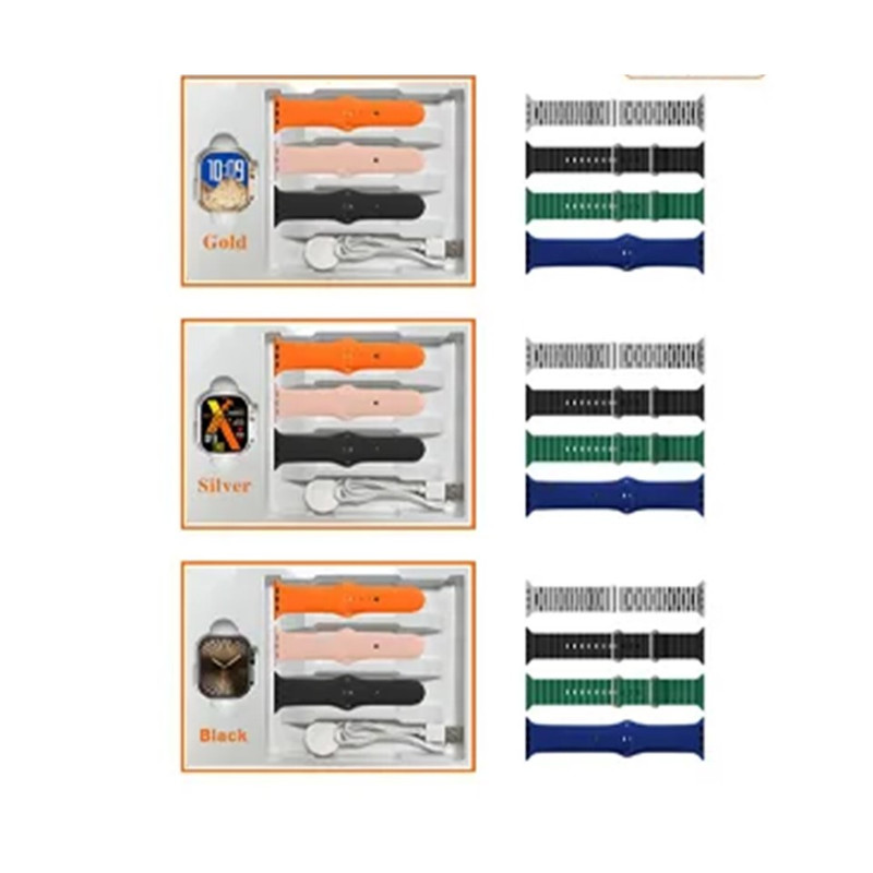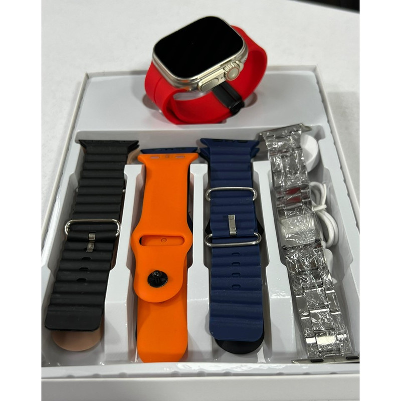 7عدد بند ساعت هوشمند (بند فلزی طرح رولکس و بندهای سیلیکونی) 1 عدد کابل شارژ وایرلس