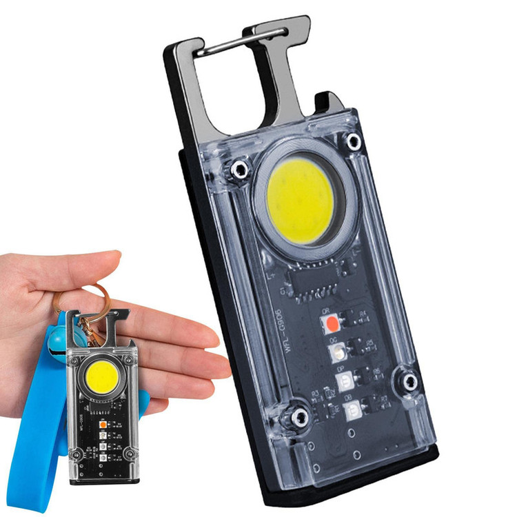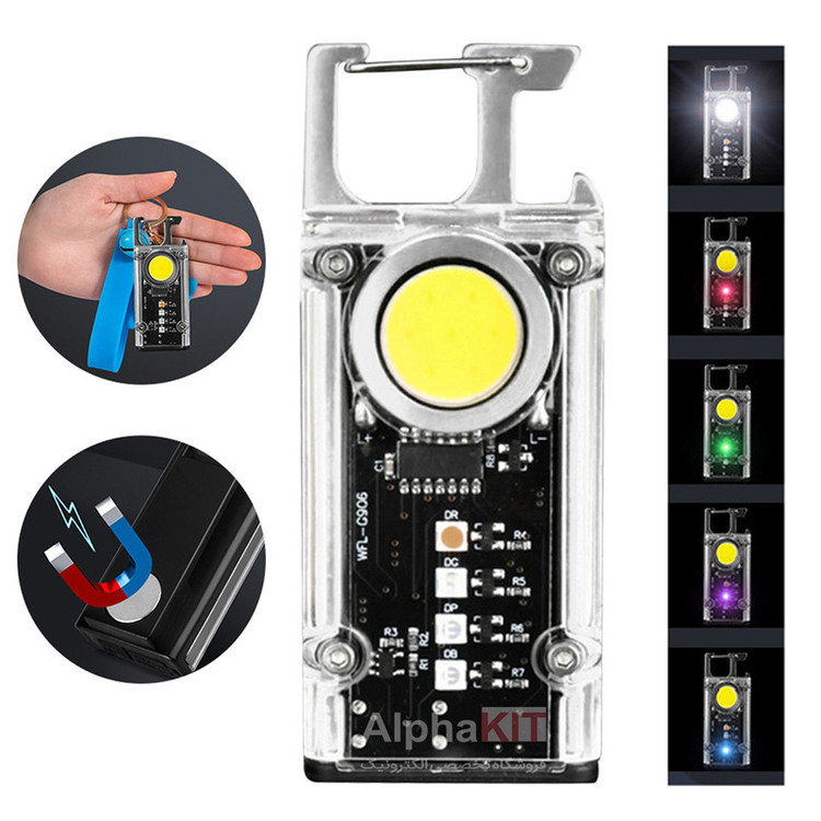 چراغ قوه مینی چندکاره جیبی مدل WFL-G906 دارای جنس بسیار محکم از فلز میباشد و یک محصول کاربردی برای استفاده روزمره و همچنین کمپینگ و مسافرتهای بیرون شهری است. این چراغ ضد آب و ضد ضربه بوده و دارای 8 حالت نوردهی میباشد.حالتهای نوردهی چراغ قوه مینی چندکاره جیبی فلزی مگنت دار مدل WFL-G906: نور مهتابی قوی، متوسط و ضعیف نور سبز، قرمز و بنفش (UV) ثابت نور قرمز چشمک زن نور پلیسی چشمک زن (ترکیب قرمز و آبی) این محصول مجهز به به چراغ قوه و چراغ خطر، کارابین، گیره کمری، درب بازکن و آهنربا میباشد. همچنین با نور بنفش UV میتوانید اصالت اسکناس را تشخیص دهید. چراغ کار چندکاره WFL G906 با باتری لیتیومی قابل شارژ آن روشنایی 500 لومن را برای شما فراهم میکند. این چراغ قوه شارژی مگنت دار از طریق کابل USB به USB Type-C که همراه محصول در جعبه قرار گرفته شده است شارژ میشود.